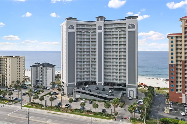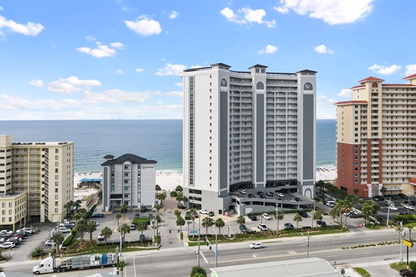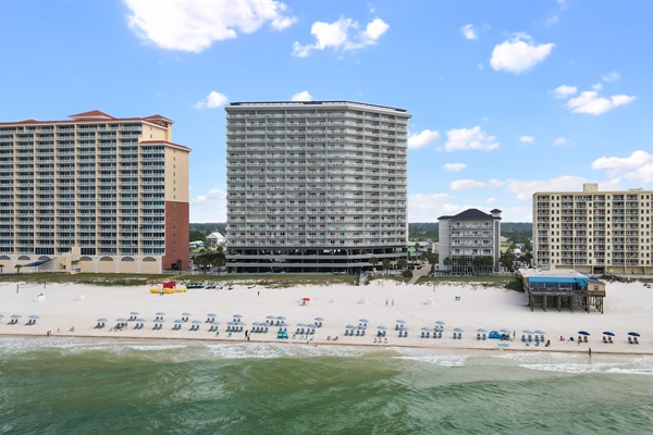 View of the beach and pools