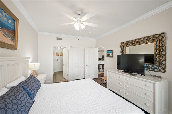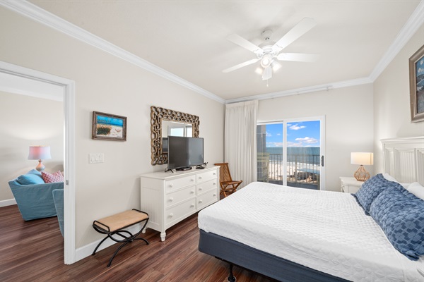Master Bedroom with balcony access and on suite bathroom King Bed